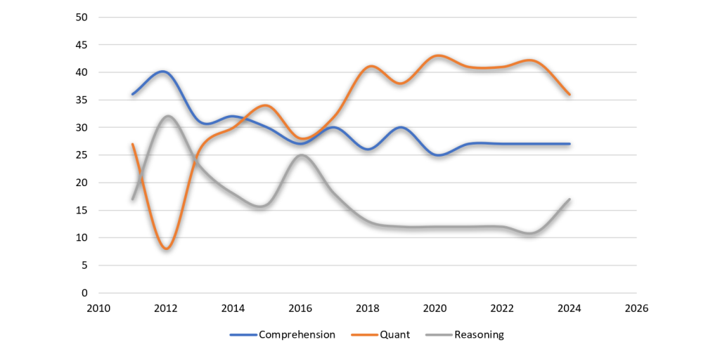 Number of Questions asked in UPSC CSAT from year 2011 – 2024